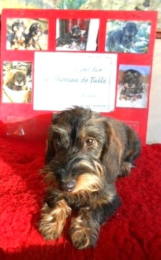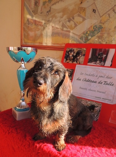 Isolde n'est pas née à Tulle, elle est la fille de mon premier mâle Baltazar un chasseur hors pair au terrier. elle a très mal débuté dans la vie, sa maman est morte à sa naissance et il lui a fallut beaucoup de courage pour survivre ! Aujourd'hui c'est une petite
